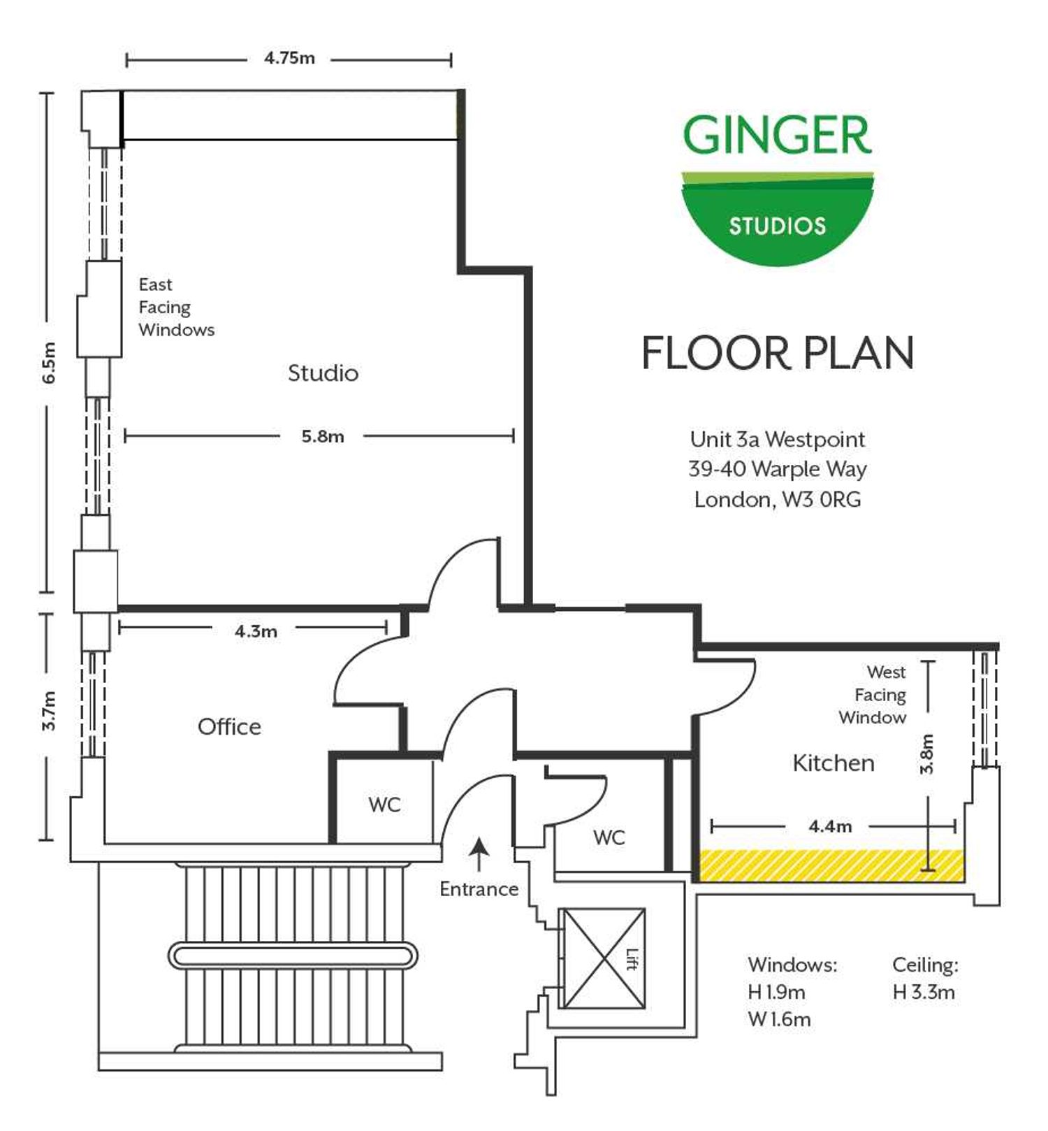 - 3.3 m ceiling height